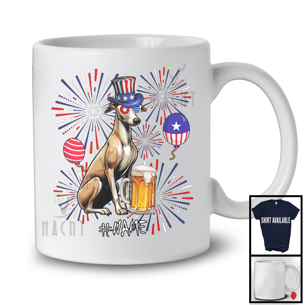 Personalized Custom Name Whippet Drinking Beer, Lovely 4th Of July Fireworks, Patriotic T-Shirt