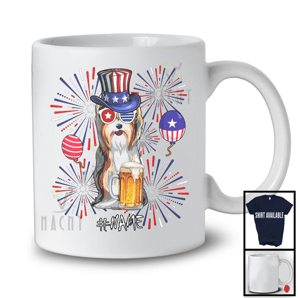 Personalized Custom Name Yorkshire Terrier Drinking Beer, Lovely 4th Of July Fireworks, Patriotic T-Shirt