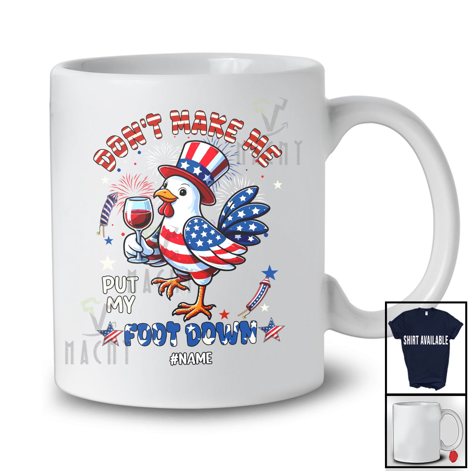 • Personalized Don't Make Me Put My Foot Down; Joyful 4th Of July Chicken; Custom Name Patriotic T-Shirt. This cotton t-shirt is a durable staple product with a classic fit. One of the most popular items, it has a relaxed style made for everyday and casual wear.