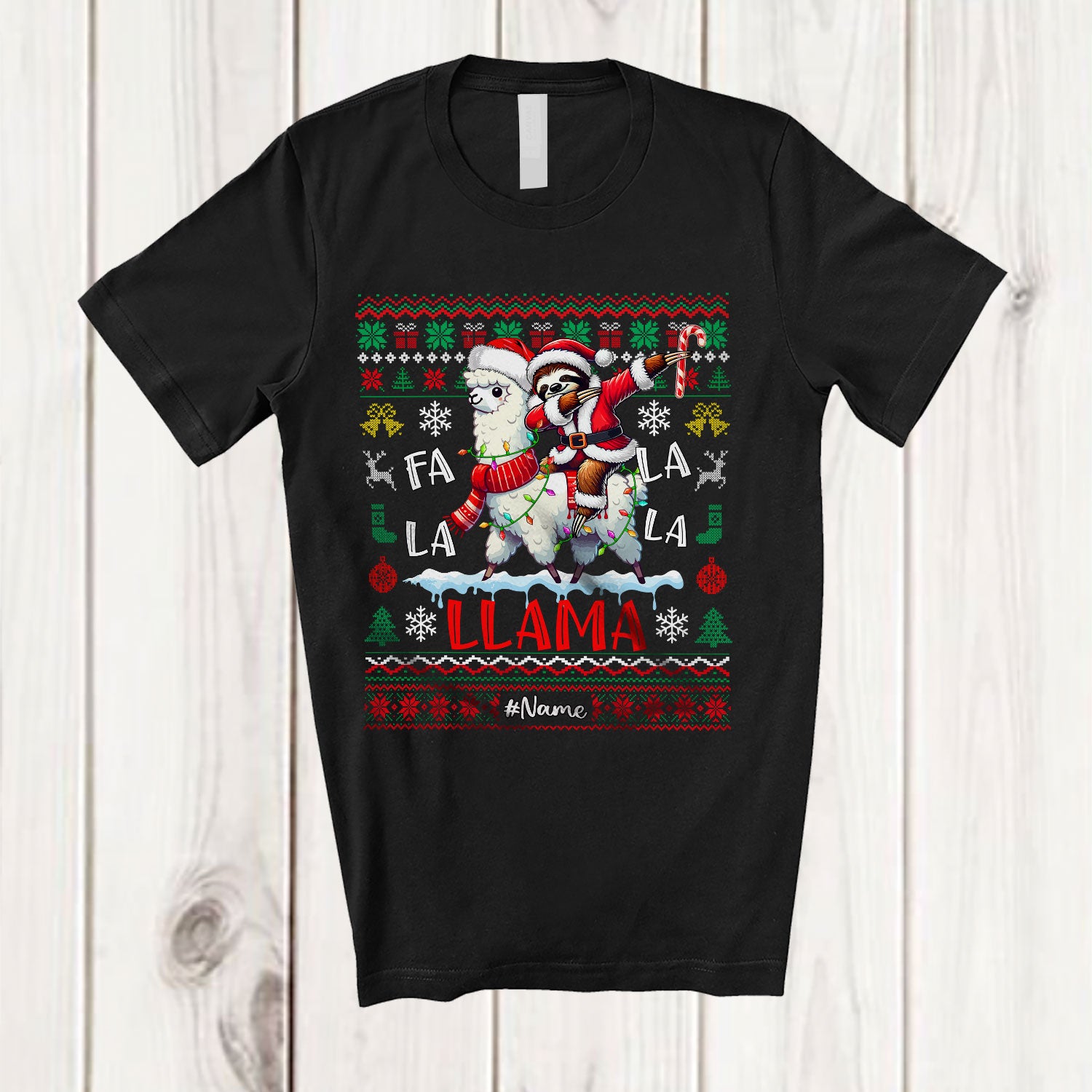 Personalized Fa La Llama; Joyful Christmas Sweater; Custom Name Santa Sloth Dabbing On Llama T-Shirt