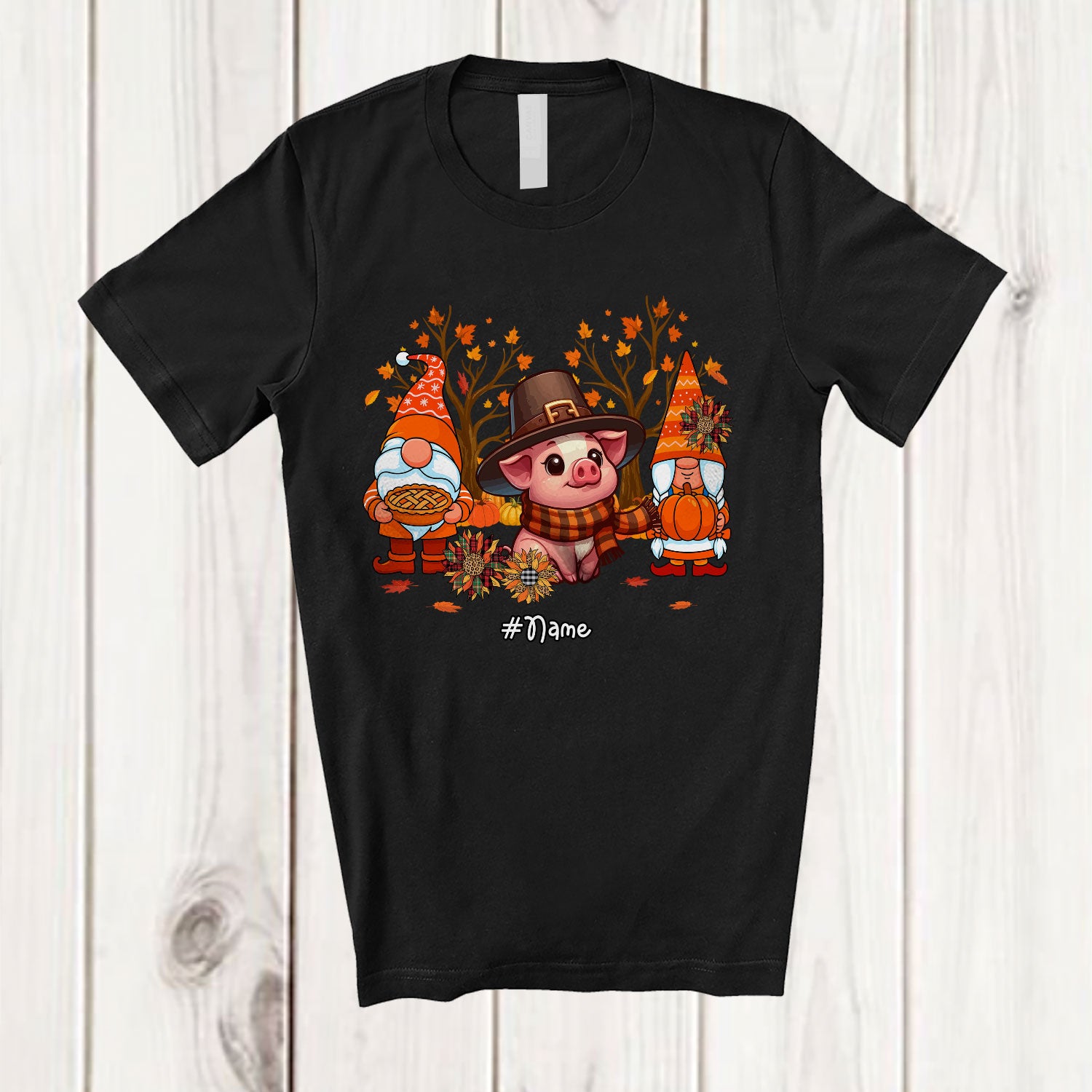 Personalized Gnomes And Pig; Lovely Thanksgiving Fall Sunflower; Custom Name Farmer Farm T-Shirt