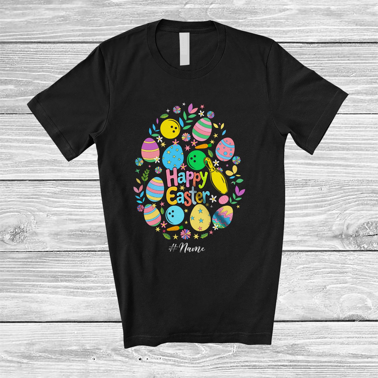 • Personalized Happy Easter; Lovely Custom Name Bowling Easter Egg Shape; Sport Player T-Shirt. This cotton t-shirt is a durable staple product with a classic fit. One of the most popular items, it has a relaxed style made for everyday and casual wear.