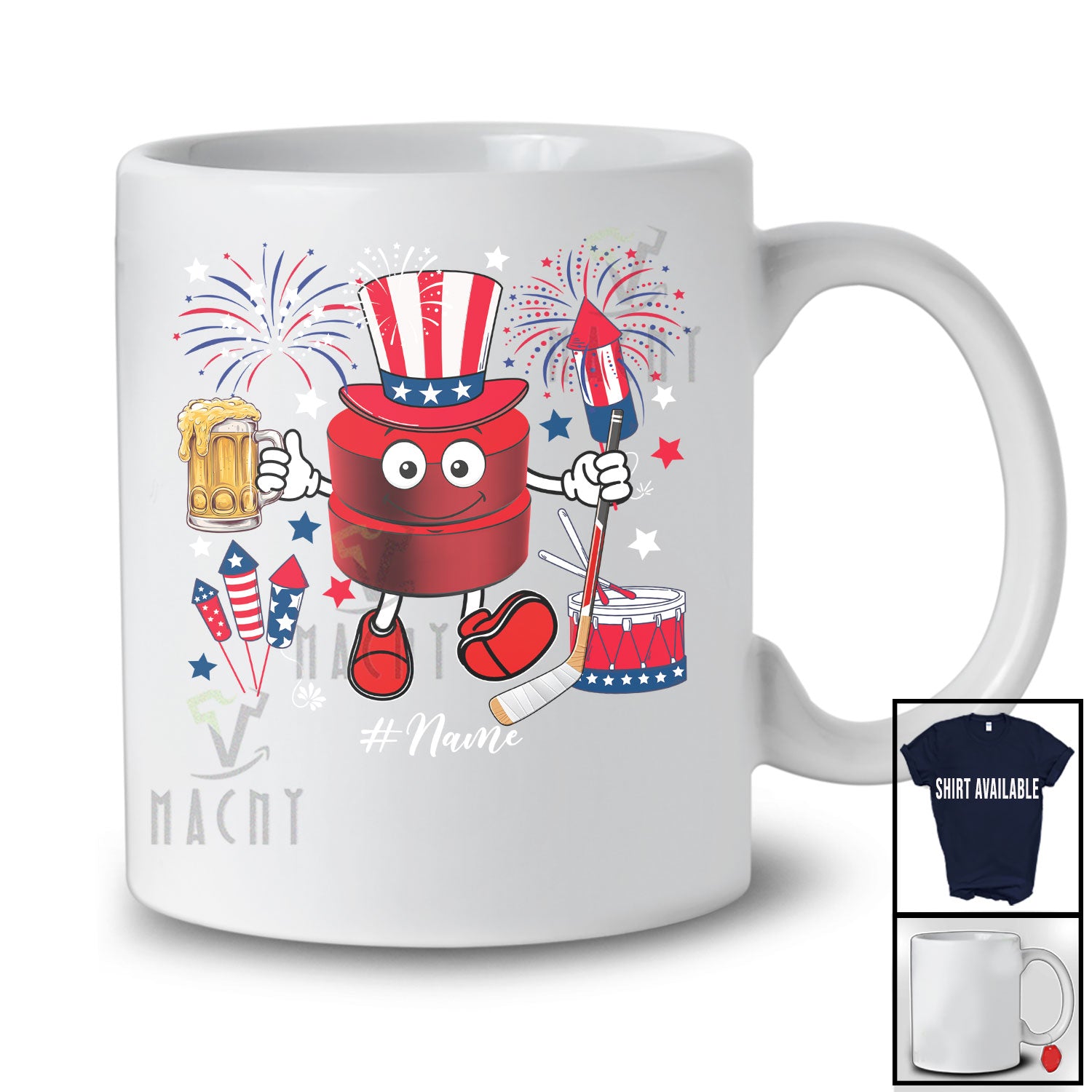 Personalized Hockey Drinking Beer; Proud 4th Of July Custom Name Hockey Player; Patriotic T-Shirt. This cotton t-shirt is a durable staple product with a classic fit. One of the most popular items, it has a relaxed style made for everyday and casual wear.