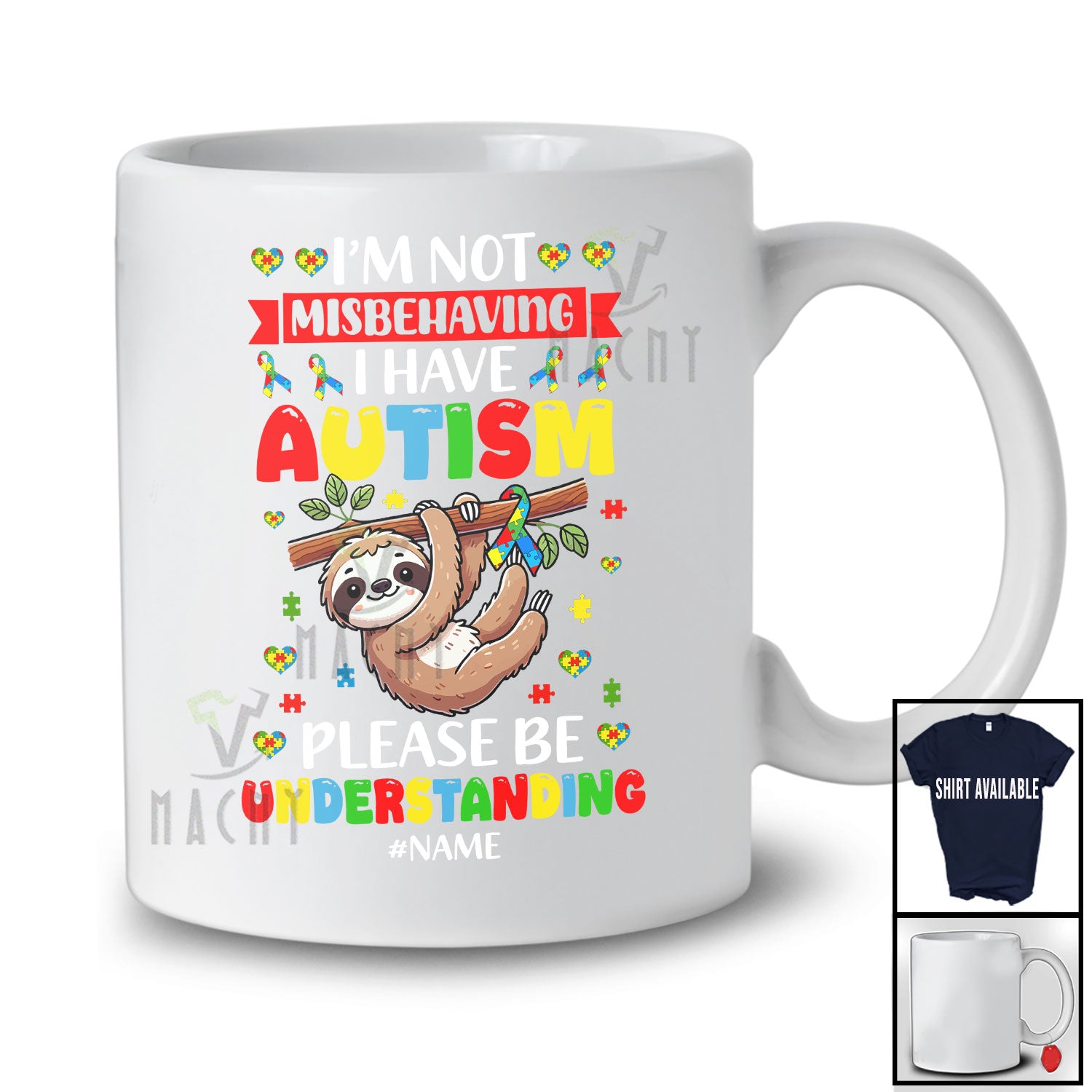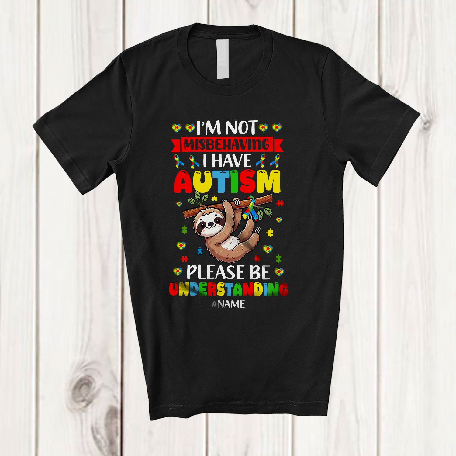This Personalized I'm Not Misbehaving I Have Autism Understanding; Lovely Custom Name Puzzle Sloth T-Shirt is great idea gift for your family, friends in this birthday, christmas, mother's day, father's day, patrick's day or any holiday.