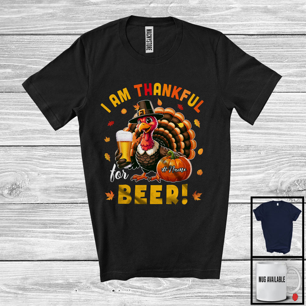 Personalized I'm Thankful For Beer; Joyful Thanksgiving Custom Name Turkey; Drinking Beer T-Shirt