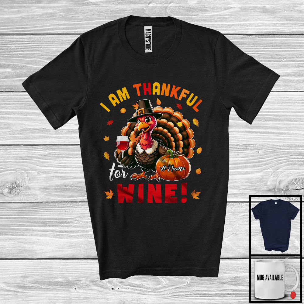 Personalized I'm Thankful For Wine; Joyful Thanksgiving Custom Name Turkey; Drinking Wine T-Shirt