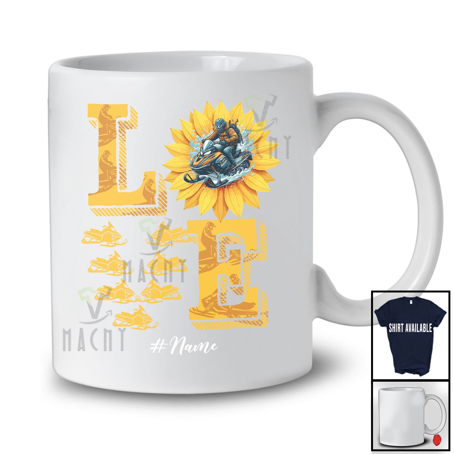 Personalized LOVE; Amazing Sunflowers Custom Name Snowmobile; Snowmobiler T-Shirt. This cotton t-shirt is a durable staple product with a classic fit. One of the most popular items, it has a relaxed style made for everyday and casual wear.