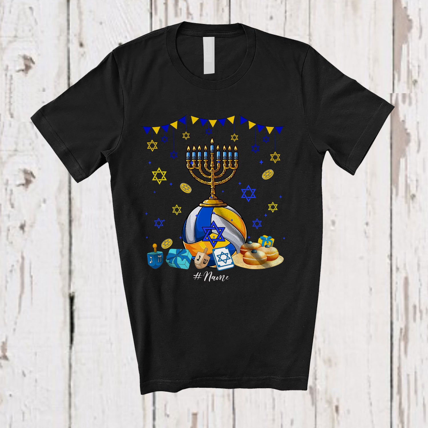 Personalized Menorah With Volleyball Ball; Amazing Hanukkah Custom Name Sport Player Team T-Shirt