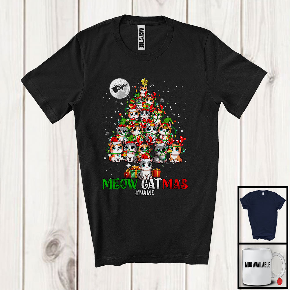 Personalized Meow Catmas; Adorable X-mas Custom Name Cat Christmas Tree; Family Group T-Shirt