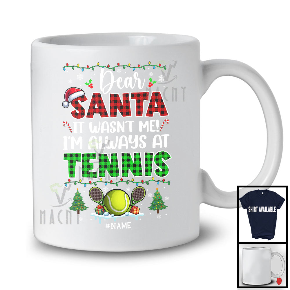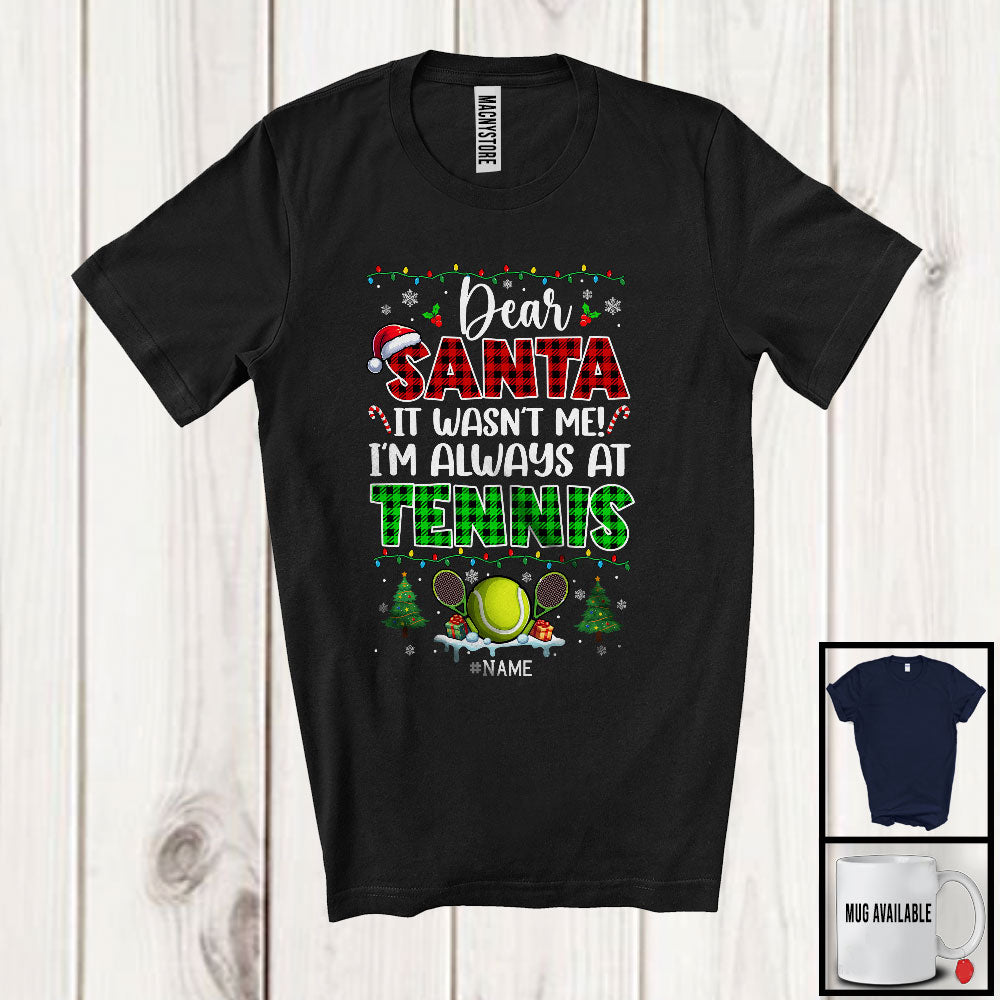 Personalized Santa It Wasn't Me Tennis; Joyful Christmas Plaid; Custom Name Sport Player T-Shirt