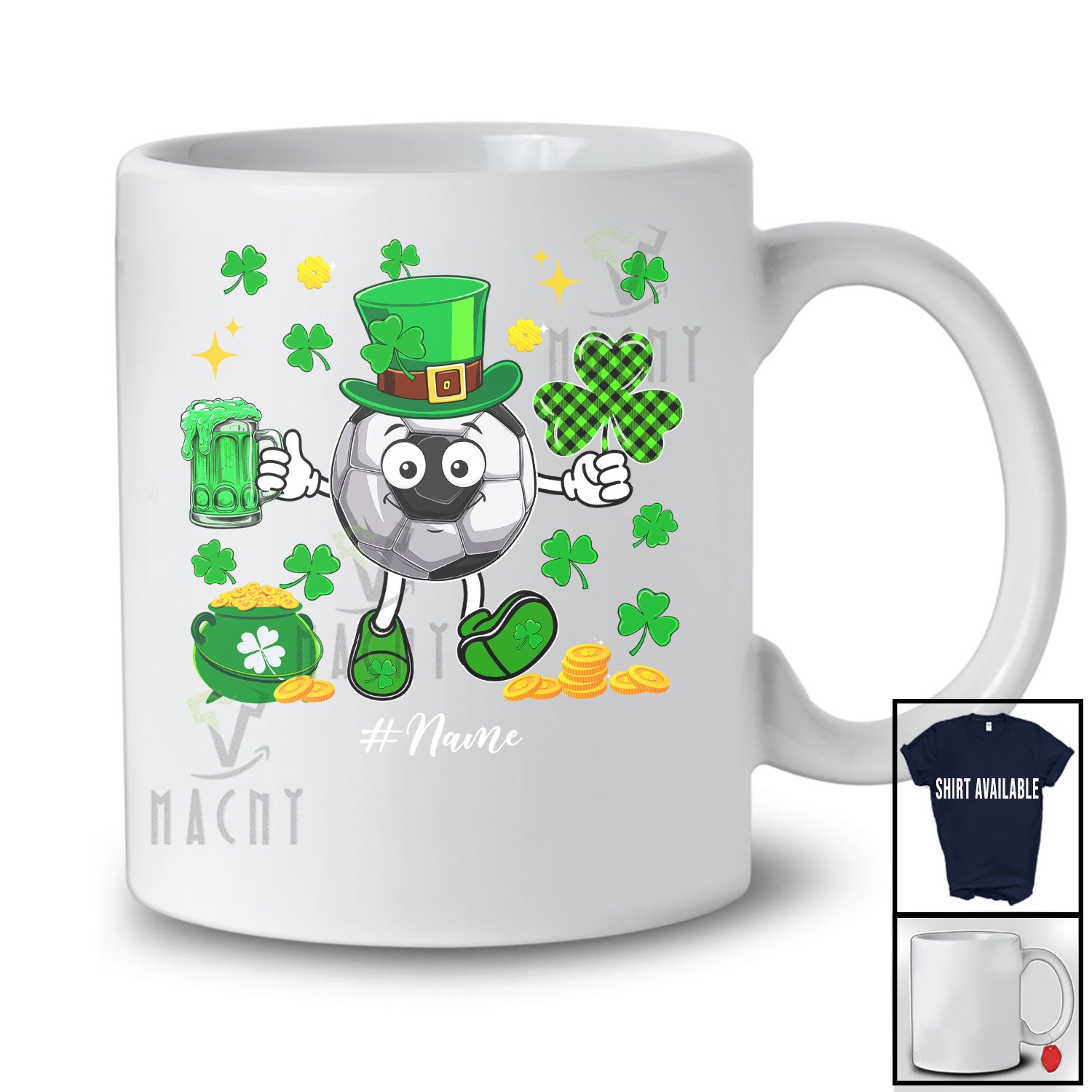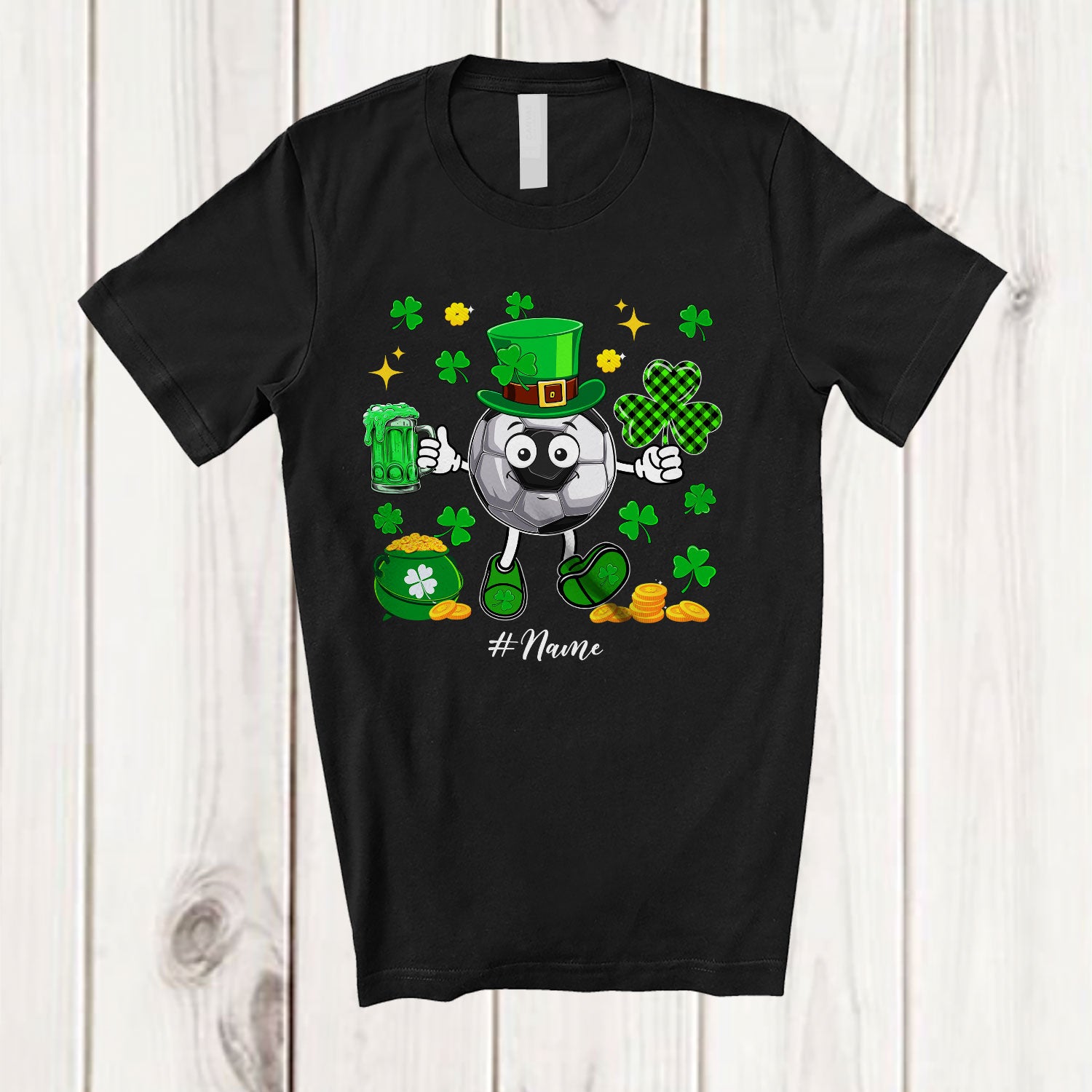Personalized Soccer Drinking Beer; Lovely St. Patrick's Day Shamrock; Custom Name Player T-Shirt. This cotton t-shirt is a durable staple product with a classic fit. One of the most popular items, it has a relaxed style made for everyday and casual wear.