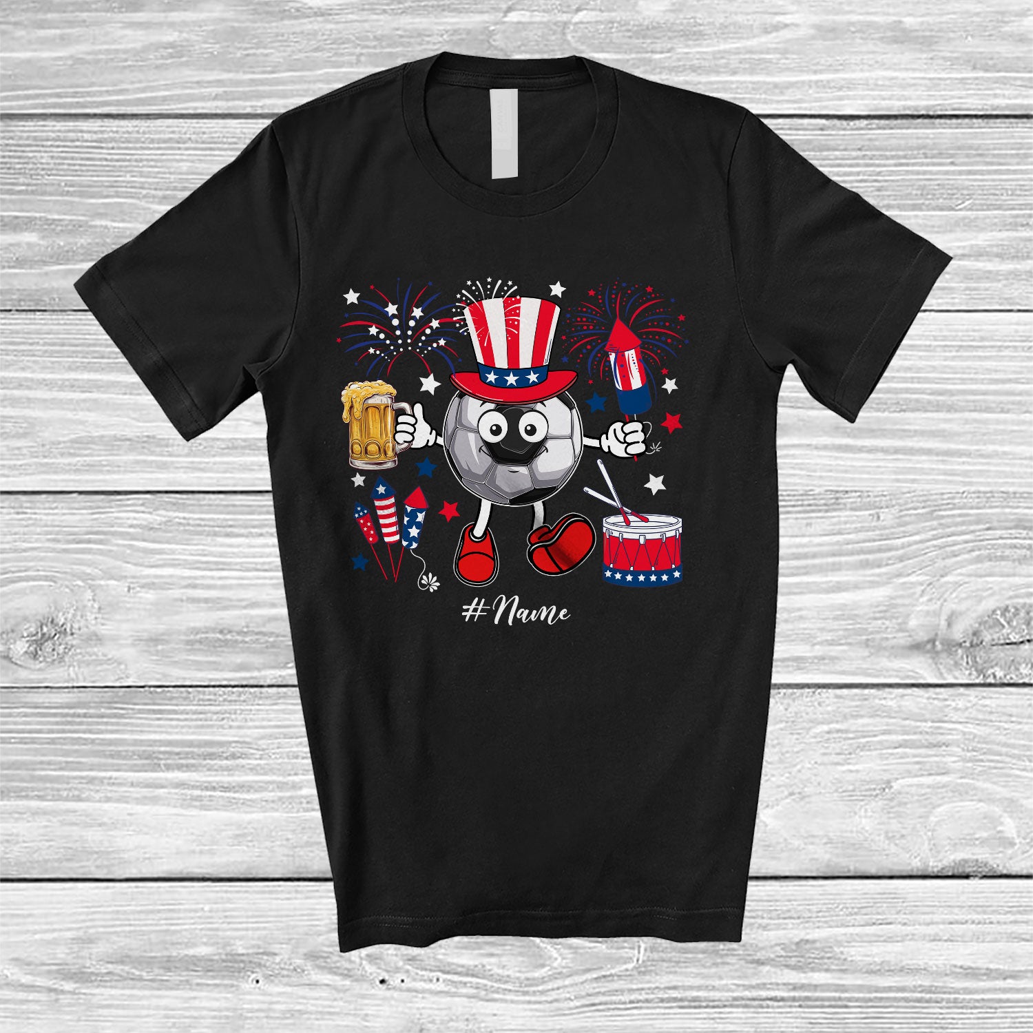 Personalized Soccer Drinking Beer; Proud 4th Of July Custom Name Soccer Player; Patriotic T-Shirt