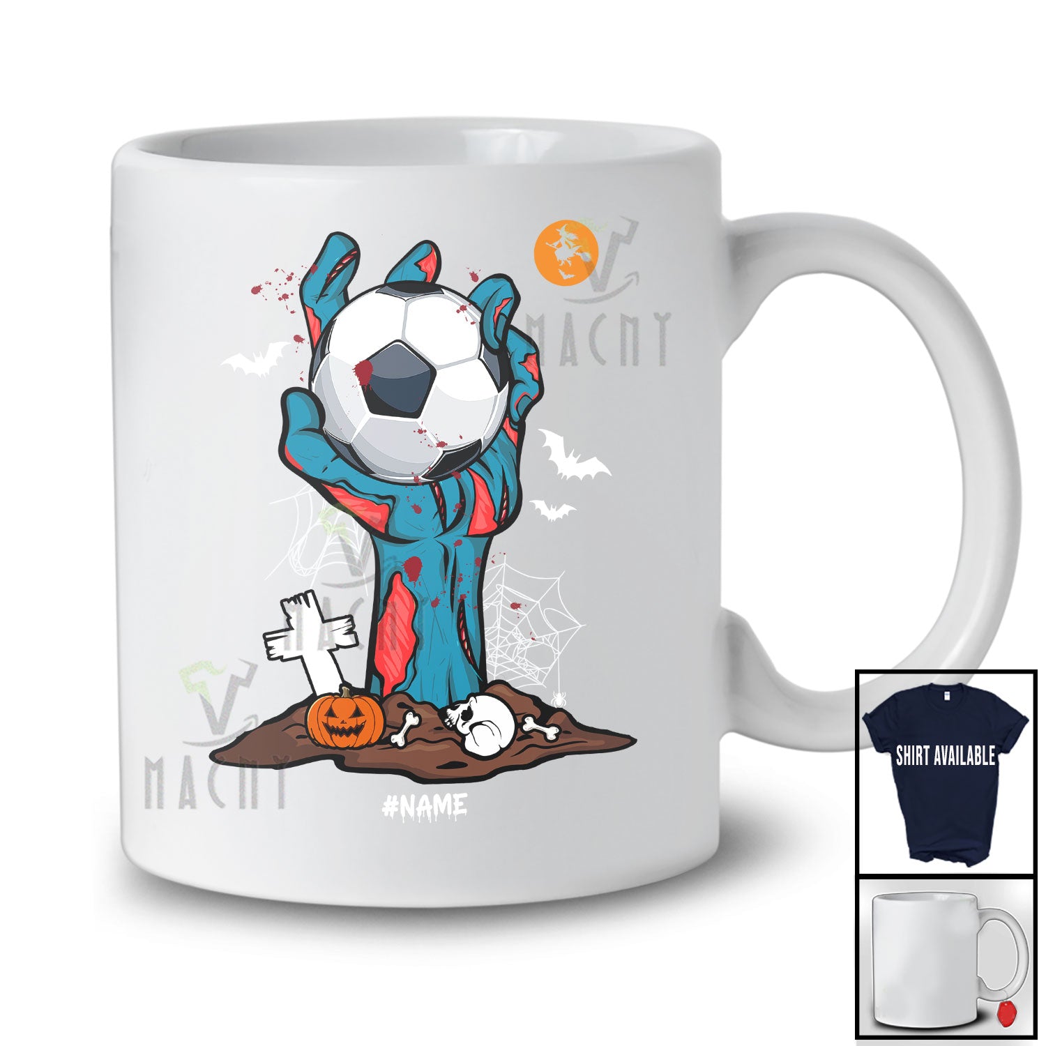 The Personalized Zombie Hand Holding Soccer Ball; Horror Halloween Custom Name Player Sport Team T-Shirt destined to impress, and priced at only $12.95, for a limited time.
