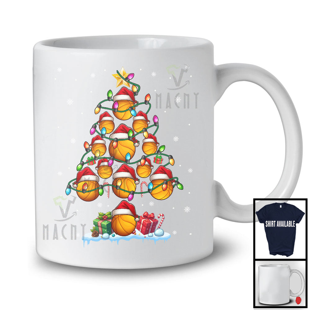 new MacnyStore - Santa Basketball Christmas Tree; Fantastic X-mas Lights Basketball Equipment Snow; Sport Player T-Shirt – Macnystore