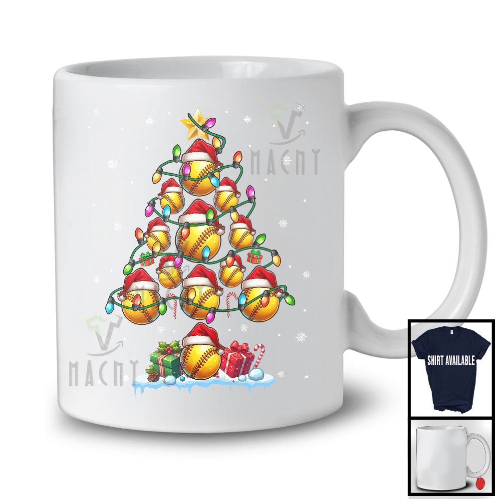 Santa Softball Christmas Tree; Fantastic X-mas Lights Softball Equipment Snow; Sport Player Team T-Shirt