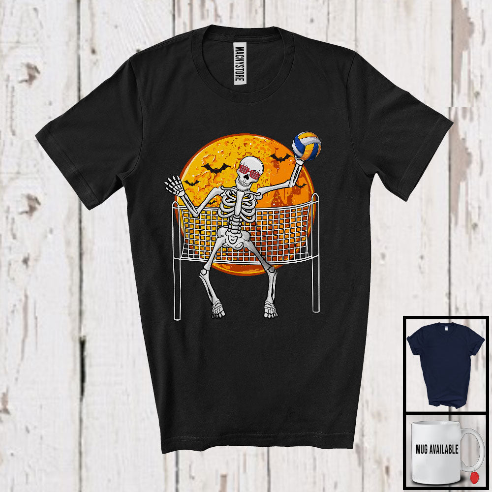 Skeleton Playing Volleyball, Joyful Halloween Volleyball Player Lover, Matching Sport Team T-Shirt