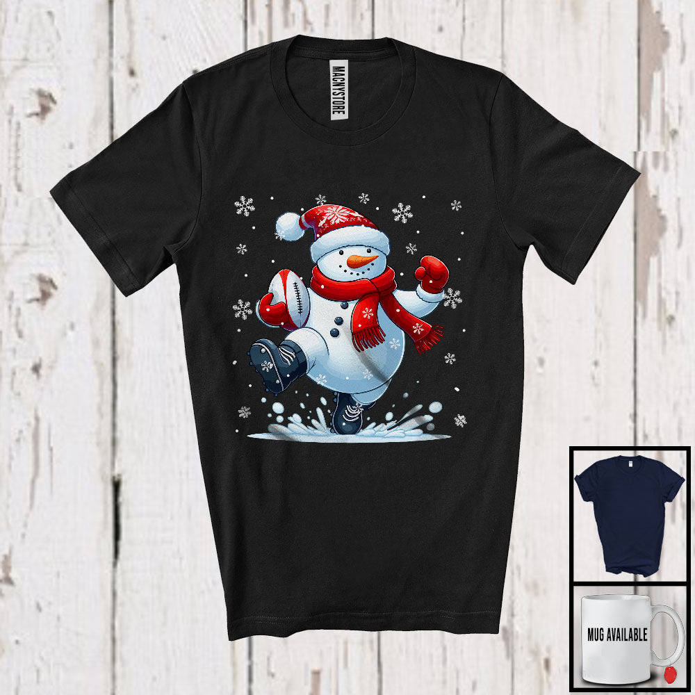 new MacnyStore - Snowman Playing Football; Merry Christmas Snowing Santa Snowman; Sport Player Team T-Shirt – Macnystore