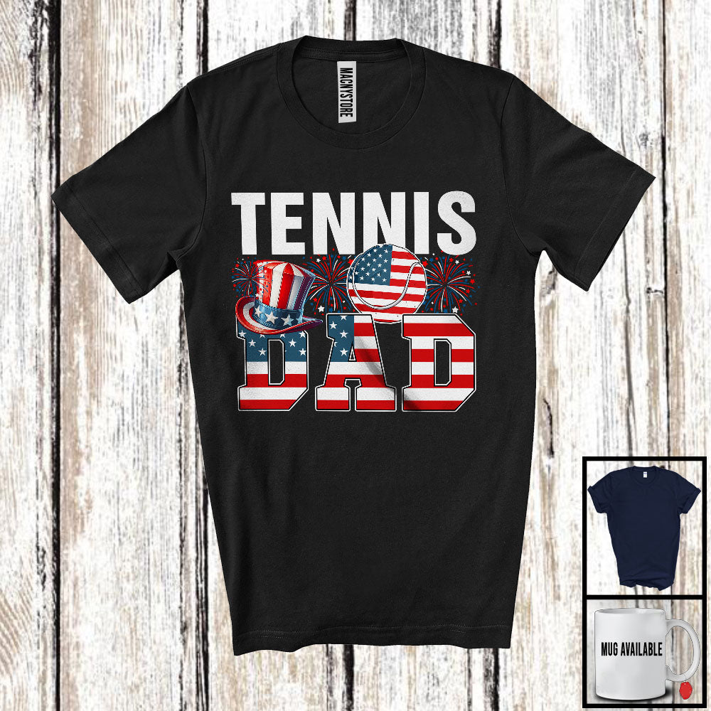 Tennis Dad, Amazing Father's Day 4th Of July American Flag, Sport Player Team Patriotic T-Shirt