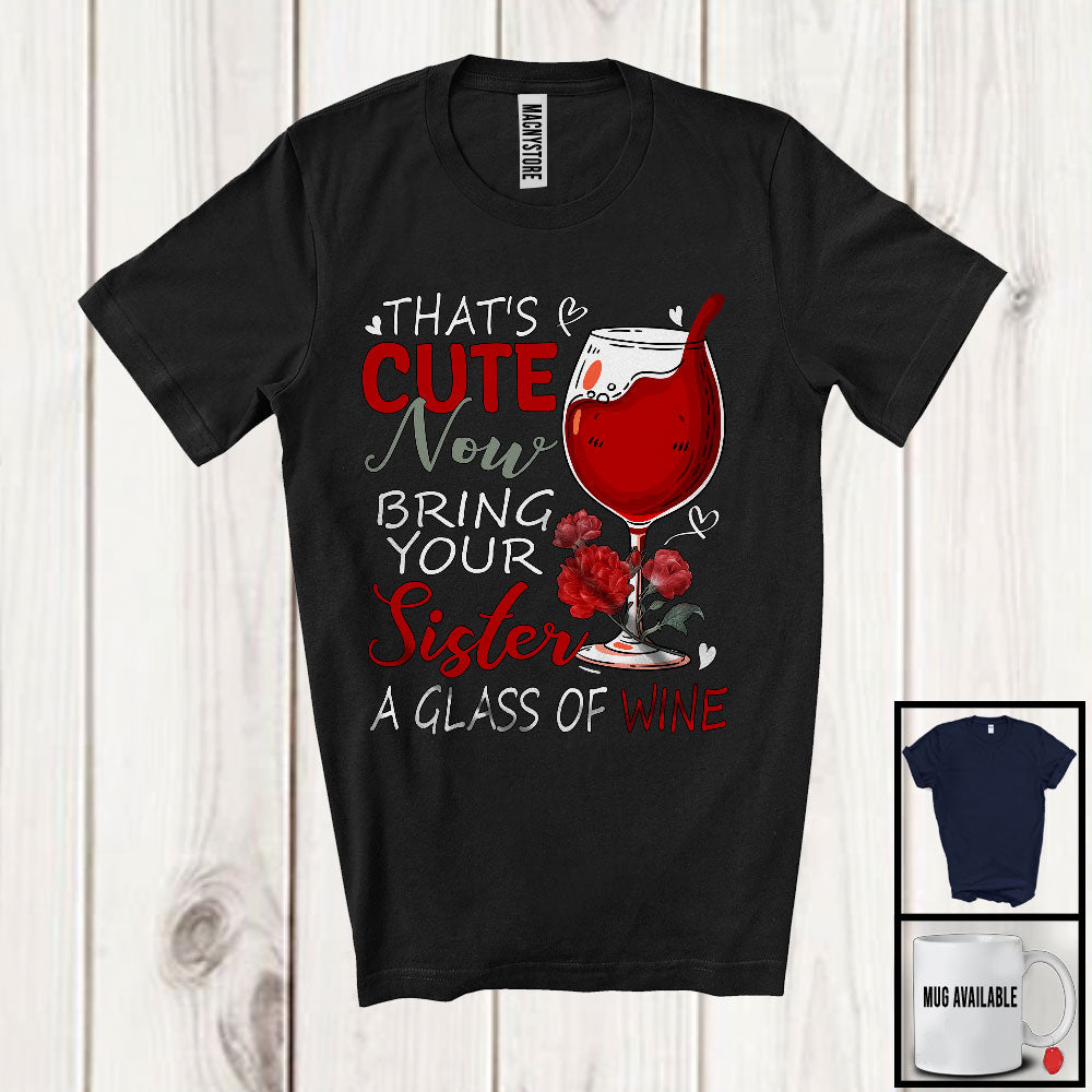 This That's Cute Bring Your Sister A Glass of Wine, Awesome Mother's Day Roses, Drinking Drunker T-Shirt is great idea gift for your family, friends in this birthday, christmas, mother's day, father's day, patrick's day or any holiday.