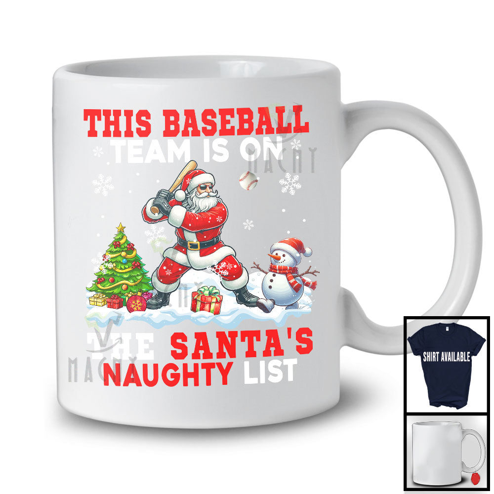 This Baseball Team Is On The Santa's Naughty List; Humorous Christmas Santa Snow; Sport Player T-Shirt