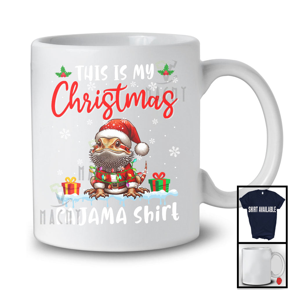 This Is My Christmas Pajama Shirt; Amusing X-mas Lights Lovely Santa Bearded Dragon; Animal Lover T-Shirt