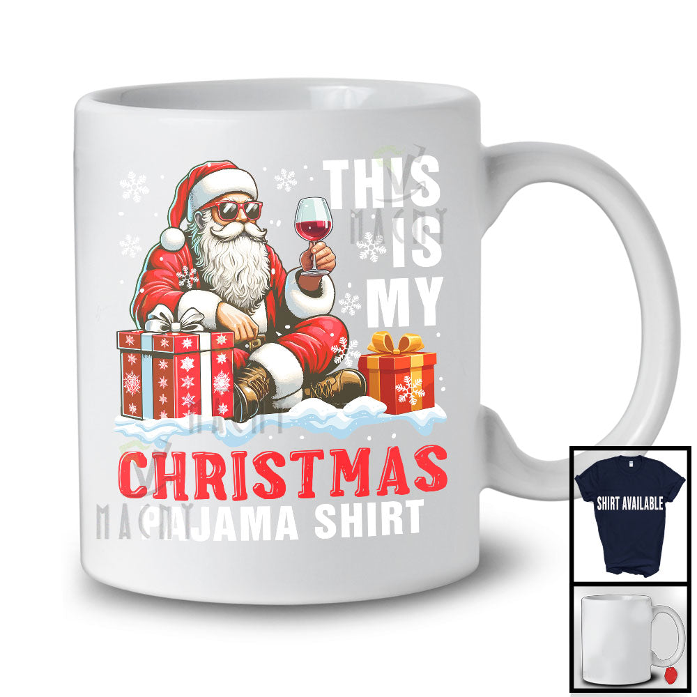 This Is My Christmas Pajama Shirt; Sarcastic Santa Drinking Wine; Drunker X-mas Group T-Shirt. This cotton t-shirt is a durable staple product with a classic fit. One of the most popular items, it has a relaxed style made for everyday and casual wear.
