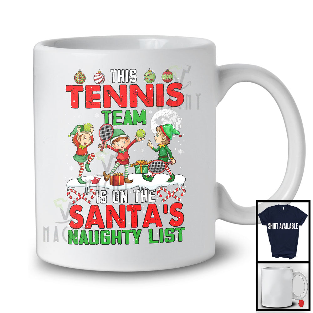 This This Tennis Team On The Santa's Naughty List; Lovely Christmas Three Elf Tennis; Sport T-Shirt is great idea gift for your family, friends in this birthday, christmas, mother's day, father's day, patrick's day or any holiday.