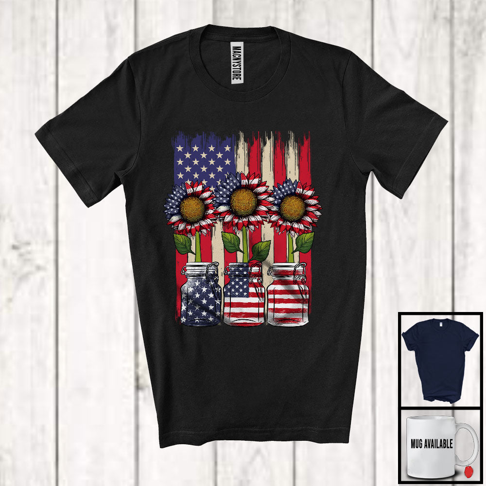 Three American Flag Sunflowers, Lovely 4th Of July Sunflower Flowers, Patriotic Group T-Shirt