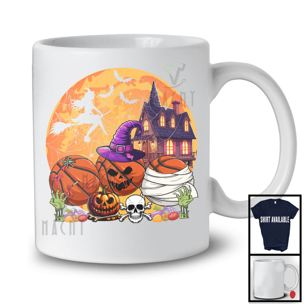 Three Mummy Zombie Witch Basketball, Scary Halloween Sport Player Playing, Moon Witch Lover T-Shirt