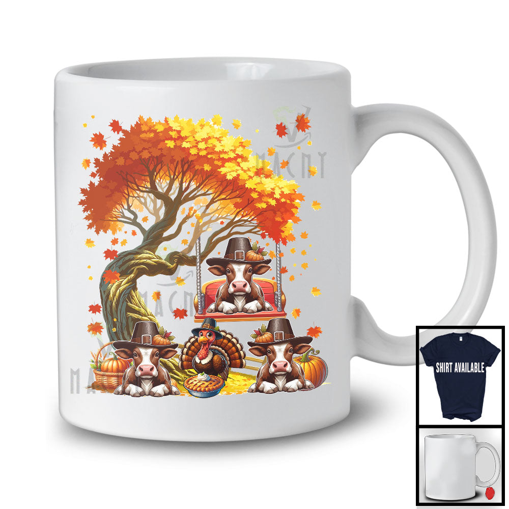 Three Pilgrim Cows With Fall Tree, Lovely Thanksgiving Turkey Autumn, Family Group T-Shirt