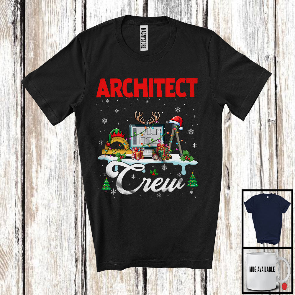 Architect Crew; Cheerful Christmas Three Santa Elf Reindeer Jobs Tools; Proud Careers T-Shirt
