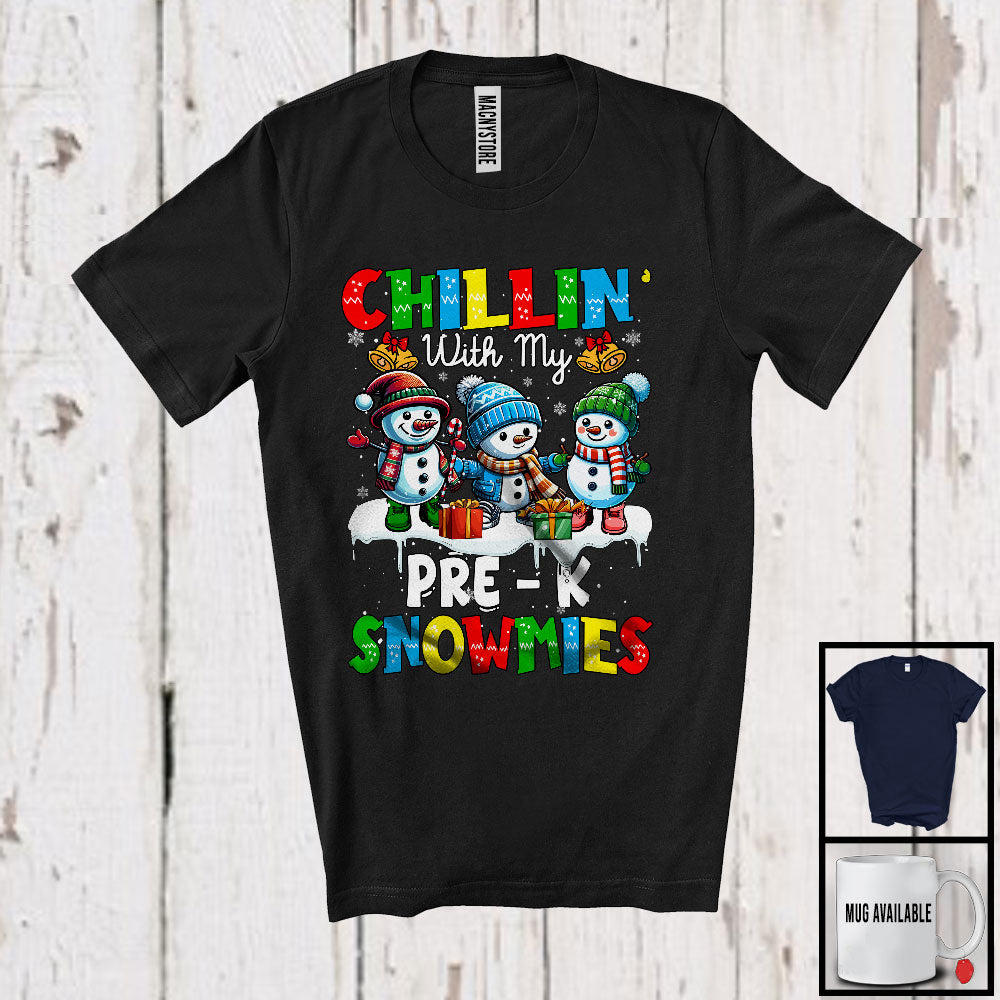 new MacnyStore - Chillin' With My Pre K Snowmies; Amusing Christmas Three Snowman; School Teacher T-Shirt – Macnystore