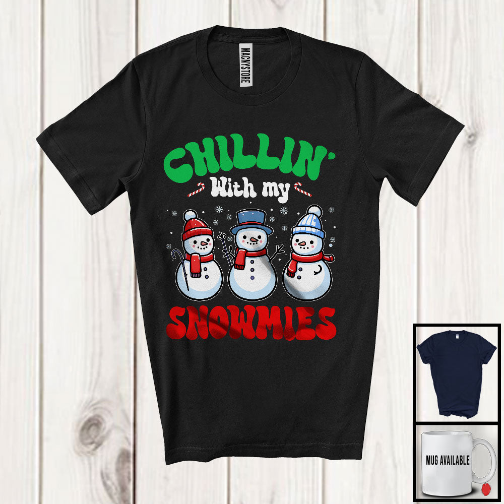 Chillin' With My Snowmies; Lovely Christmas Three Snowman; Snowing Family Group T-Shirt. This cotton t-shirt is a durable staple product with a classic fit. One of the most popular items, it has a relaxed style made for everyday and casual wear.