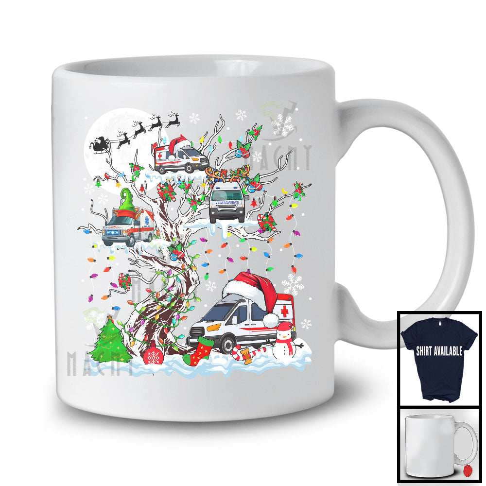 Christmas Squad; Adorable Santa Elf Reindeer Ambulance On X-mas Tree Snowing; Family Group T-Shirt