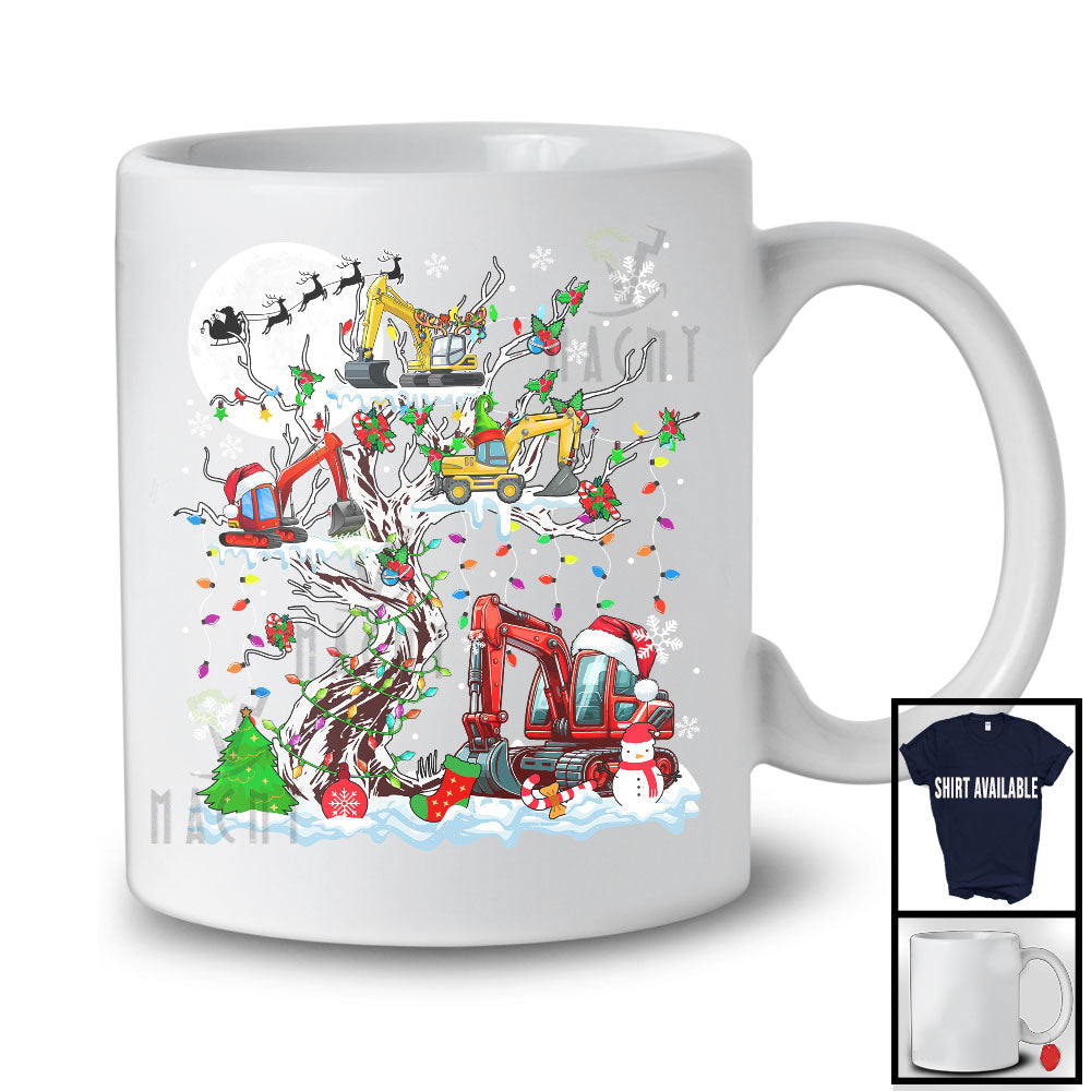 Christmas Squad; Adorable Santa Elf Reindeer Excavator On X-mas Tree Snowing; Family Group T-Shirt