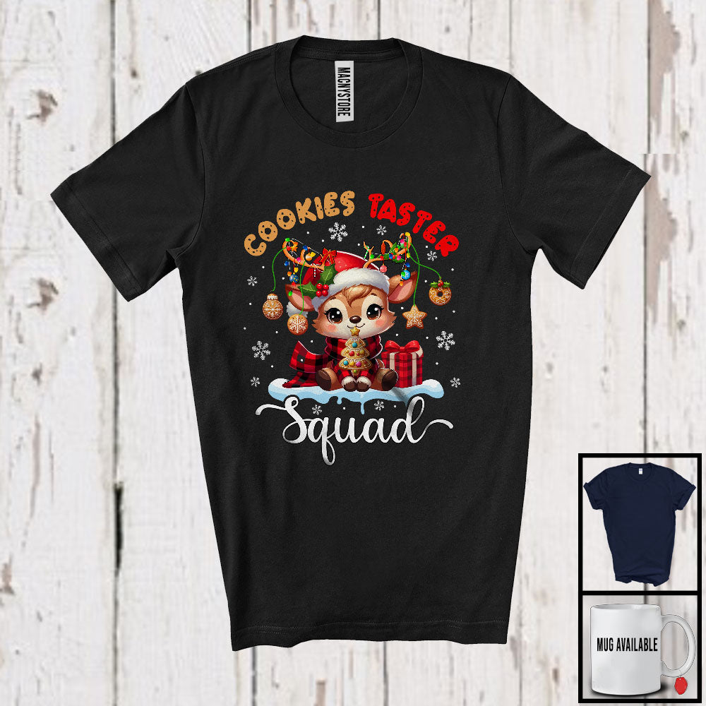 Cookies Taster Squad; Fantastic Christmas Lights Santa Reindeer Plaid; Baker Baking T-Shirt. This cotton t-shirt is a durable staple product with a classic fit. One of the most popular items, it has a relaxed style made for everyday and casual wear.
