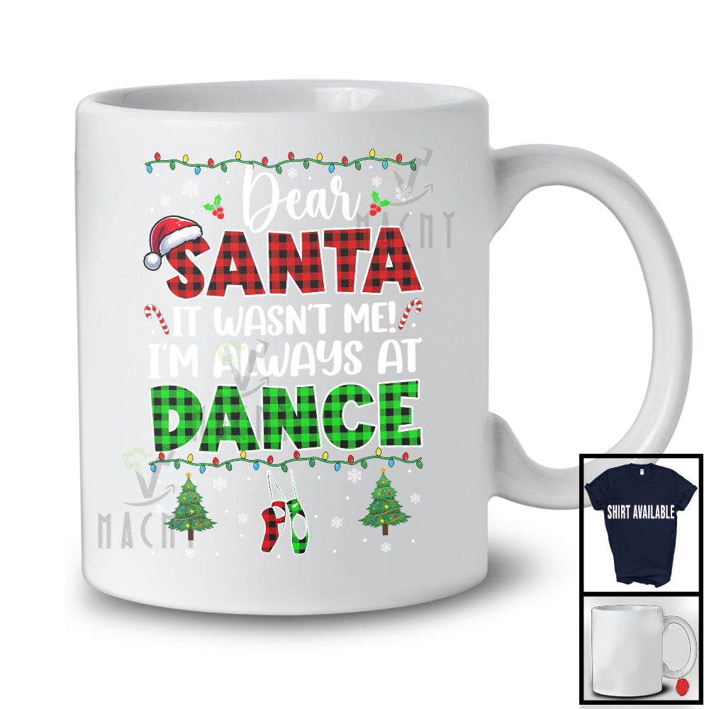 • Dear Santa It Wasn't Me Always At Dance Ballet; Fantastic Christmas Plaid; Dancer Family Group T-Shirt. This cotton t-shirt is a durable staple product with a classic fit. One of the most popular items, it has a relaxed style made for everyday and casual wear.