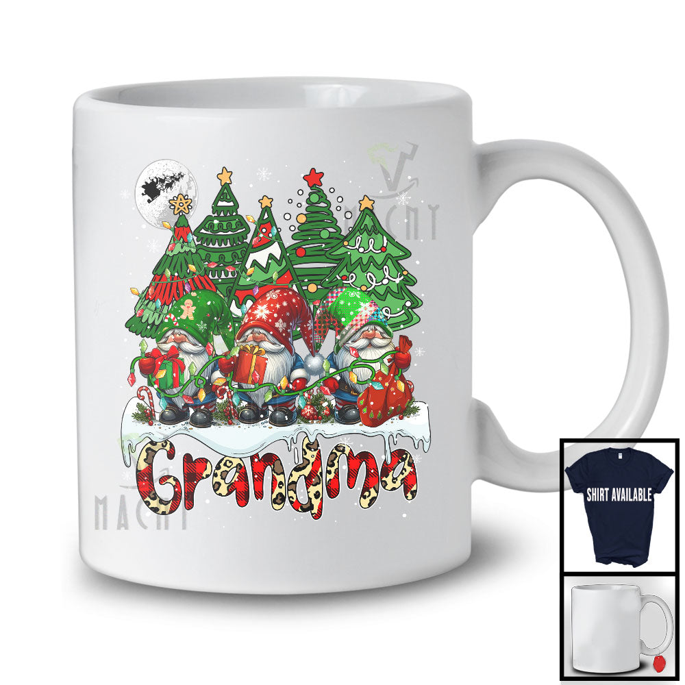 Grandma; Amusing Christmas Trees Three Gnomes Gnomies; Leopard Plaid Family Group T-Shirt