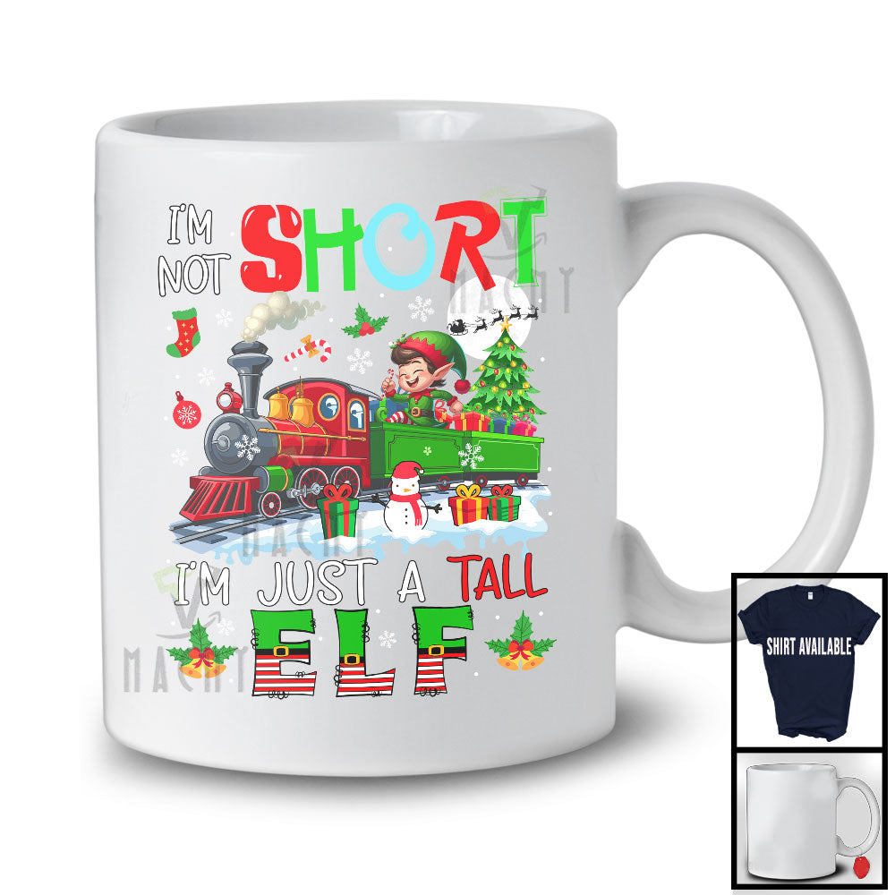 This I'm Not Short Just A Tall Elf; Humorous Christmas Elf On Train Snowing; Family Group T-Shirt is great idea gift for your family, friends in this birthday, christmas, mother's day, father's day, patrick's day or any holiday.