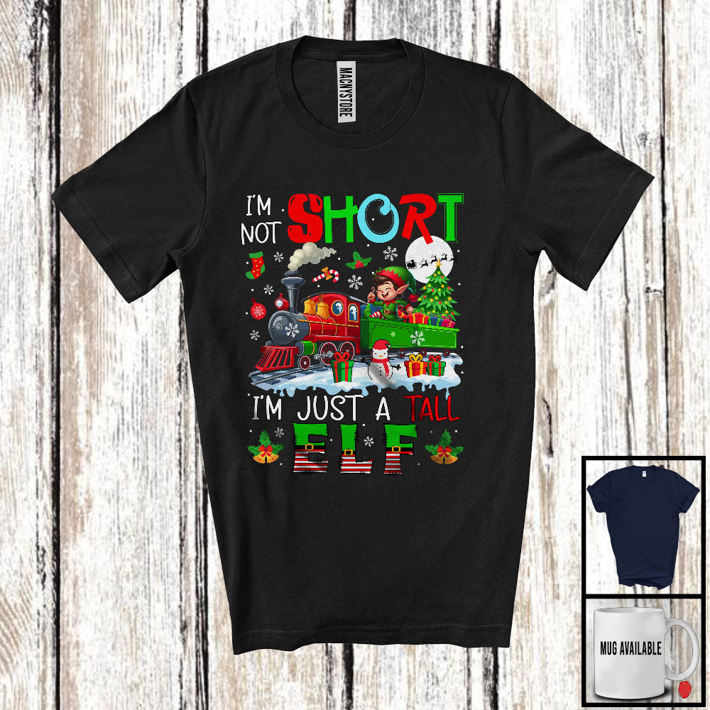 I'm Not Short Just A Tall Elf; Humorous Christmas Elf On Train Snowing; Family Group T-Shirt