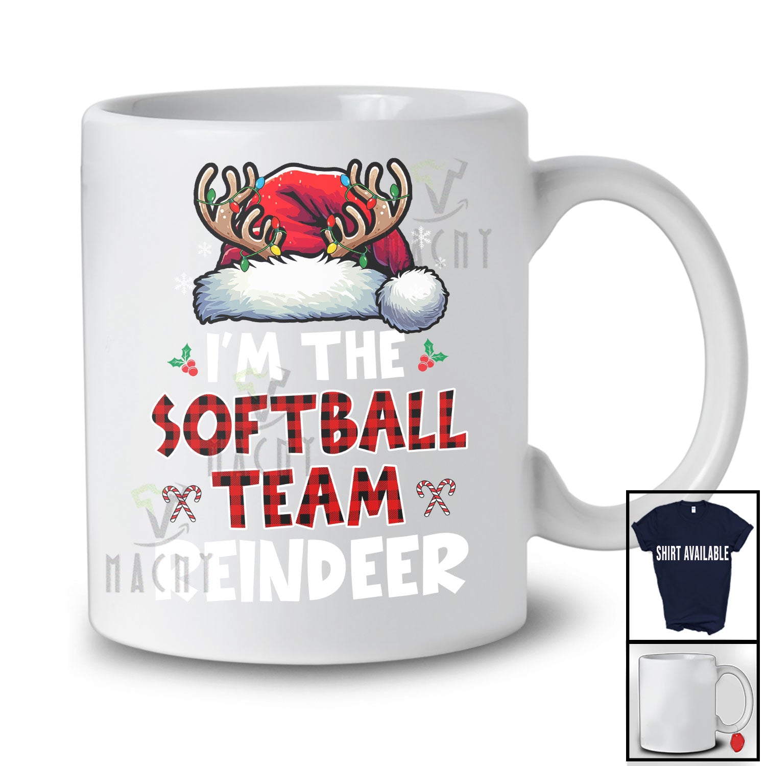 I'm The Softball Team Reindeer; Joyful Christmas Red Plaid Santa Reindeer; Sport Player Family T-Shirt