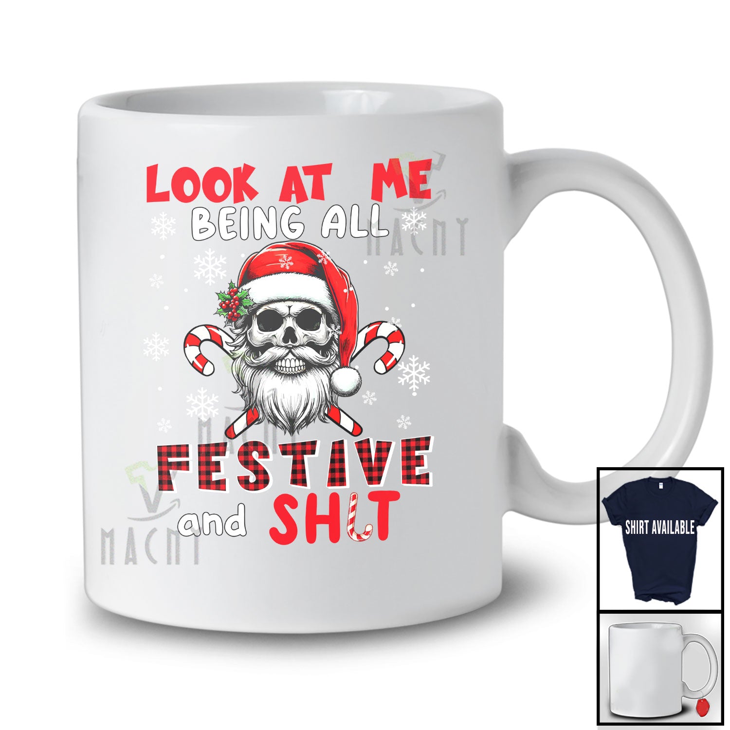 Look at Me Being All Festive And Shit; Amazing Christmas Skull Red Plaid; Family Group T-Shirt. This cotton t-shirt is a durable staple product with a classic fit. One of the most popular items, it has a relaxed style made for everyday and casual wear.
