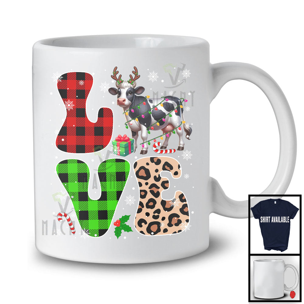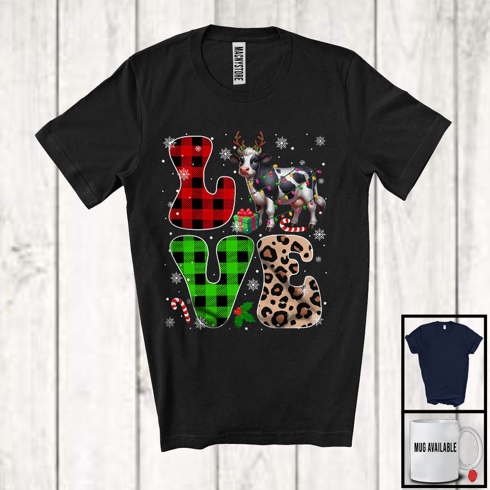LOVE; Lovely Christmas Lights Leopard Plaid Gnomes; Matching Cows Lover Family Group T-Shirt