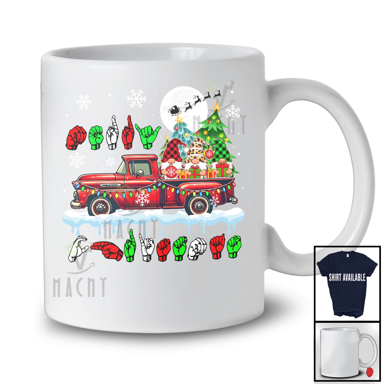 This Merry Christmas; Adorable X-mas ASL Three Gnomes On Pickup Truck; Hand Sign Language Family T-Shirt is great idea gift for your family, friends in this birthday, christmas, mother's day, father's day, patrick's day or any holiday.