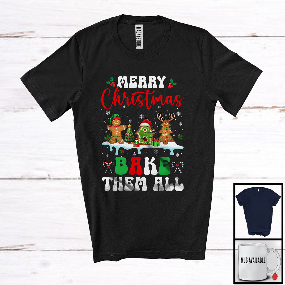 Merry Christmas Bake Them All; Adorable Christmas Three Gingerbread Baker; Snowing Family T-Shirt