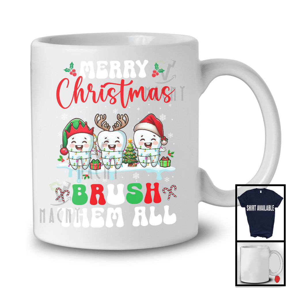 Merry Christmas Brush Them All; Adorable Christmas Three Teeth Dental Dentist; Snowing Family T-Shirt