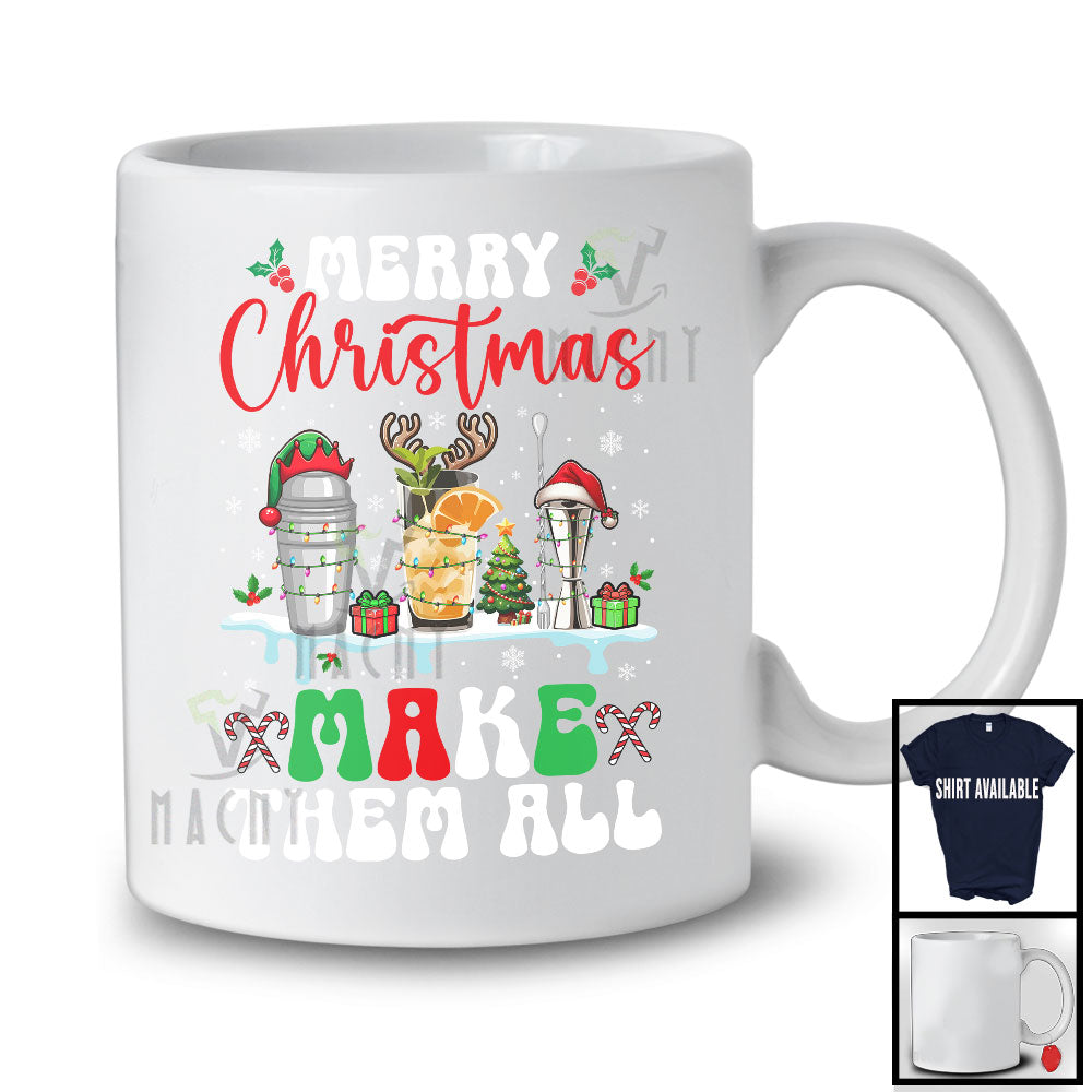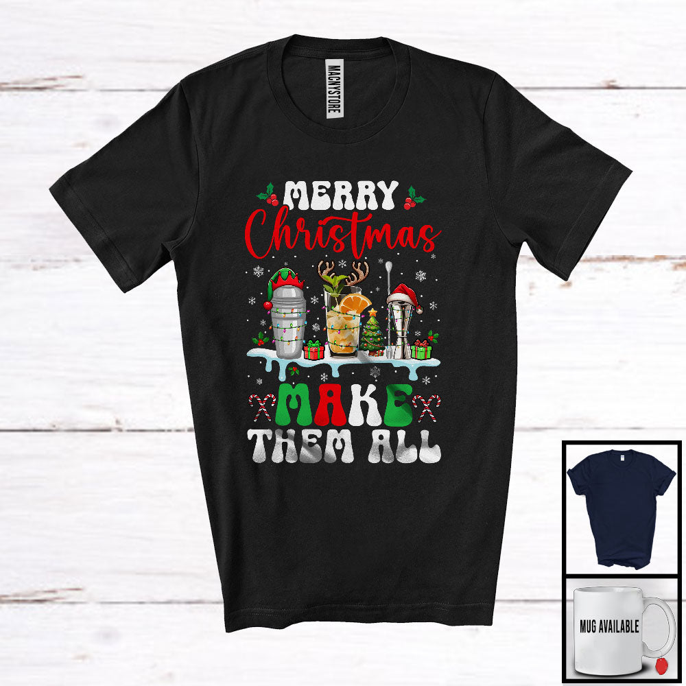 Merry Christmas Make Them All; Adorable Christmas Three Bartender Tools; Snowing Family Group T-Shirt