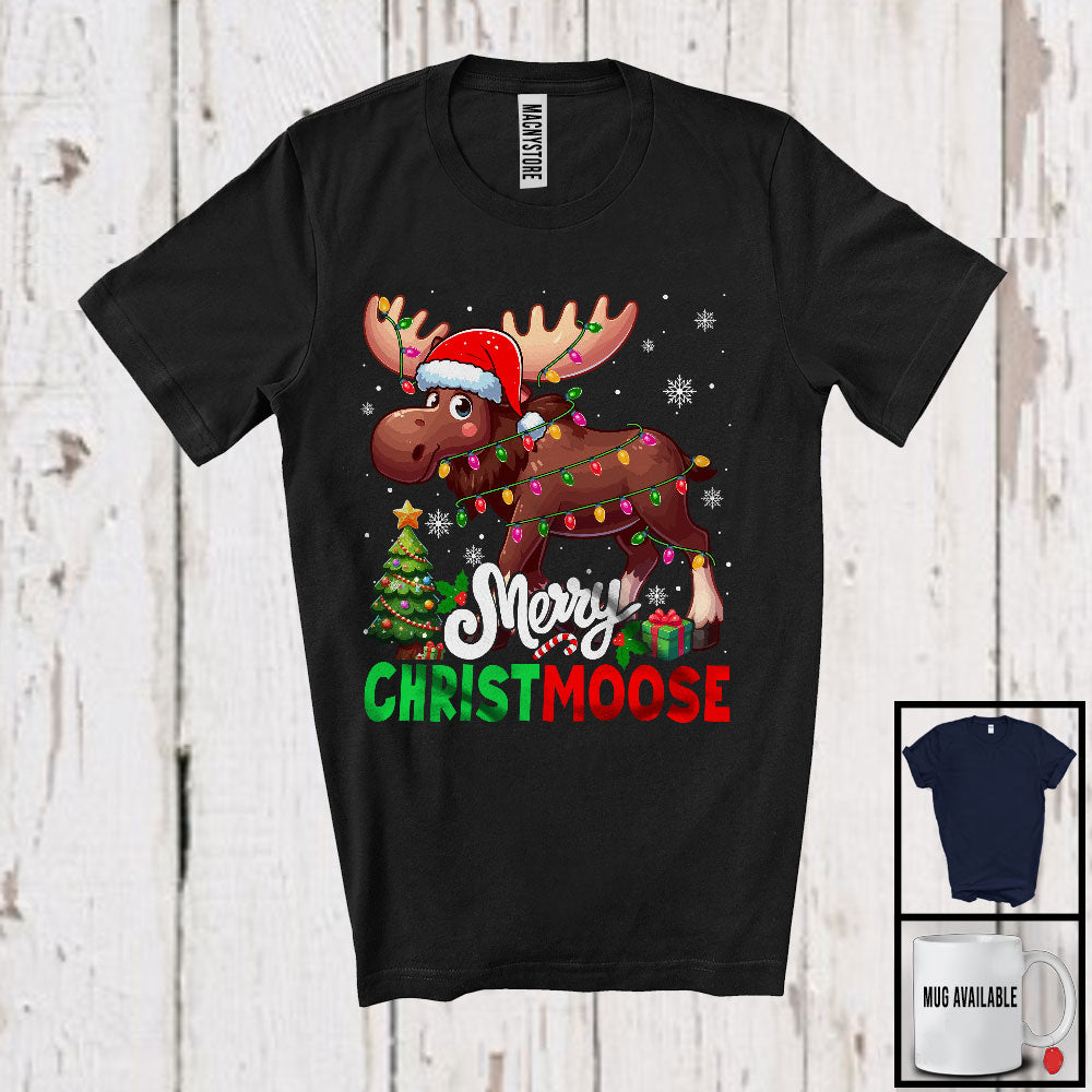 Merry Christmoose; Adorable Christmas Lights Moose Santa Reindeer; Matching Family Group T-Shirt