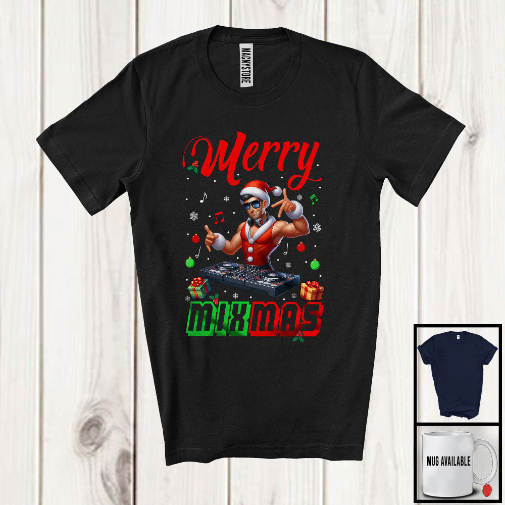 Merry Mixmas; Joyful Christmas Men Santa DJ Dancer; Snow Matching X-mas Music Lover T-Shirt