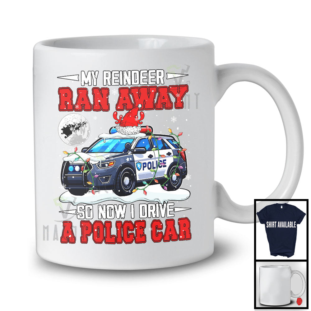 This My Reindeer Ran Away Now I Drive A Police Car; Humorous Christmas Santa Driver; Family T-Shirt is great idea gift for your family, friends in this birthday, christmas, mother's day, father's day, patrick's day or any holiday.